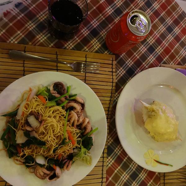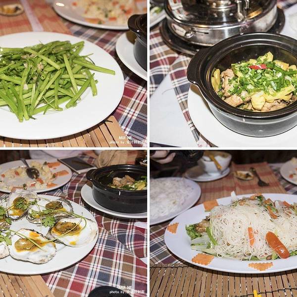 因为到达美奈也是晚上了我们入住酒店后,接下来第一件事就是要赶紧去吃饭才行呀。中午在胡志明才吃一碗米粉说好的晚上到美奈大家要大餐一餐顿。 从酒 店出来到街上找来找去最后找到这家 NHAT NGUYET的餐厅。从外观看上去这家餐厅还可以不过当我们点了些菜后觉的味道没有想向中的好。大家只能凑合的吃一餐吧。