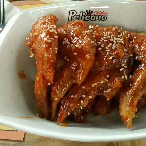 【Location】佛山市禅城区季华四路创意产业园18栋102铺。坐公交132、137、150等在季华四路东站或者创意产业园站下车均可到达创意产业园,不过个人比较觉得在季华四路东站下车会较近点,而且这个车站有天桥方便过马路。【Service】这家炸鸡据说在韩国已经风靡了33年,这家店是登录佛山的首家店,人气火爆,每次经过都是在排长龙,而且价格不便宜,一份炸鸡都四十以上,但是依然吸引很多人过来尝鲜,看来都是哈韩欧巴迷多吧。装修方面,门口的欧巴纸牌人,里面都有很多可爱的小鸡公仔摆饰。但是座位不多,而且稍觉的位置窄,坐久了不舒服,感觉是不想让客人坐久多待的节奏吃完就得走...店里还有各种韩国进口饮料卖,啤酒也很受欢迎,炸鸡和啤酒更配哦~【Food】*香辣鸡腿*30元两条腿,分重辣和微辣,地道广东妹子不敢吃重辣,据说重辣连吃惯辣的都顶不顺,[珍爱生命,远离重辣],卖相就已经相当吸引,炸得金黄的鸡腿,在配上秘制的辣酱,果然不同凡响。*香甜鸡翅*42元8块,这个绝对要强力推荐的说,那个甜酱超好吃,吃完一块忍不住还想继续吃,这是要变胖的节奏么...*特色酱香鸡粒饭*33元一份,米饭口感好特别,有点像寿司,混合着紫菜还有鸡肉粒,简直是称得上完美。