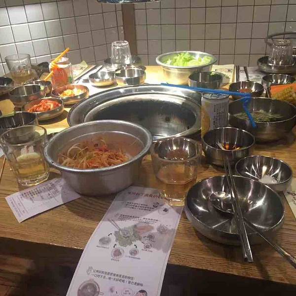 一家韩国烤肉店,是自助式的,价格不贵,可以团购,59元一个人,觉得性价比还是很高,里面有啤酒可以随便喝,是纸上烤肉的,服务员把火打开,放上烤肉的纸,一会就可以开始烤了,自己去拿菜,就是没有果汁,都是...