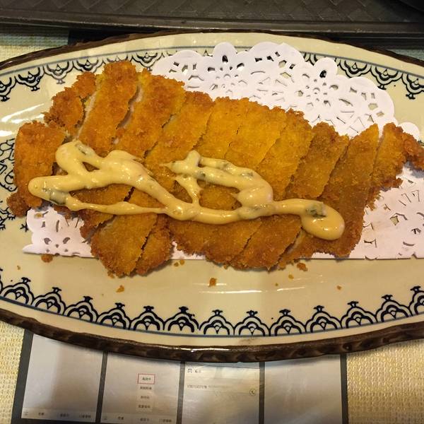 ...是这个单点也要12元的炸物了,名为吉列炸猪排,肉质鲜美,外酥里嫩,配着酱汁,非常酥脆,超级好吃