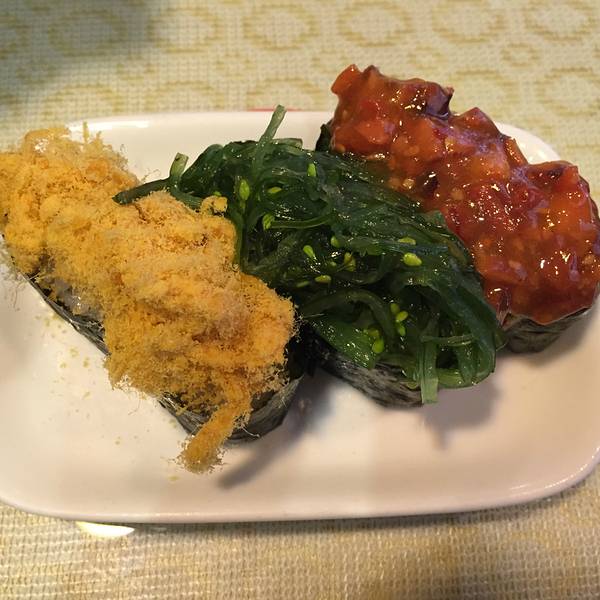 金田料理(南门店)位于武汉市洪山区桂元路华师南门元宝山,就在武汉华中师范大学南门到雄楚大道桂元路公交站路上中间的位置,位置很好,交通也算便利。来这里的吃的大部分都是华中师范大学的学生吧,或者是华师玩的朋友们,我们来这里是因为我们就住在华师南门的武汉华中师范大学华大教育培训中心管理教育综合楼,去赶公交的路上经过这里,刚好到了吃午饭的时间,看到店里又推出了几款特价活动,便进店瞧了瞧。原本是冲着28元变22元的汁煮肥牛锅烧饭去的,进去看了菜单后,发现有这么多好吃的,就变心了,哈哈。金田料理,是一个日韩式的餐厅,有点类似味千拉面一类的店子,不过经营的种类更多一些,这里不仅有各类寿司、拉面和咖喱饭外,还有各种锅物和炸物,价位都在十几块到三十多。点套餐的话就四五十元一份,够两个人吃。看了餐单,很多都想吃,就点了一个集寿司、炸物和蔬菜等为一体的韩式泡菜拉面锅。其中最想吃也是最好吃的便是这个单点也要12元的炸物了,名为吉列炸猪排,肉质鲜美,外酥里嫩,配着酱汁,非常酥脆,超级好吃。寿司,有三个,色彩鲜艳,分部是肉丝的、蔬菜的和辣椒酱的,不同材料的各有千秋,都很美味呢,最喜欢吃中间那个蔬菜的。这个名为大根,就是一个下饭菜,酸甜酸甜的,甜味更重,很好吃哦。香喷喷的米饭,上面还有芝麻呢。这才是我们的重中之重,我们的锅物,韩式泡菜拉面锅,香菇、鸡蛋、泡菜、丸子和拉面,经锅下的小火炖煮,在沸腾的小锅吃着,很不错哦。店内环境也很好呢,漂亮的灯具,以及浅色系的桌椅。另一侧则是我们的座位,配着着和服的日本女子,更有韵味。