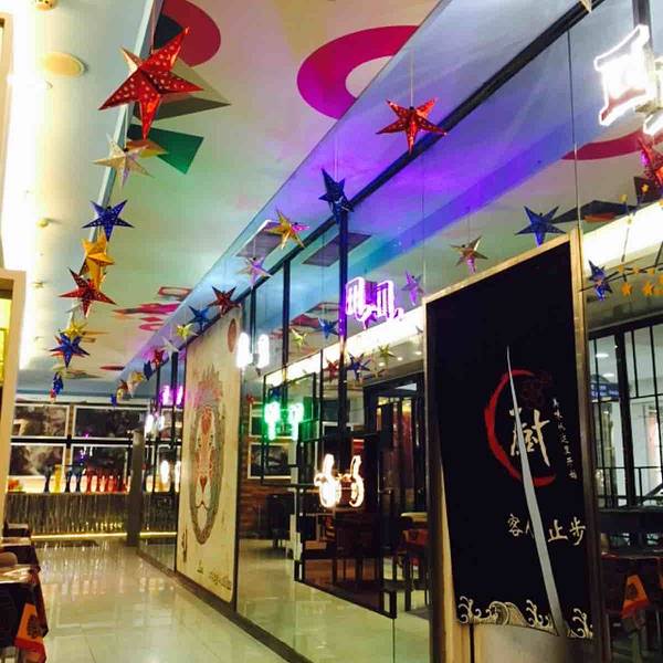 satan星座融合餐厅,位于武汉市洪山区光谷意大利风情街四楼,地理位置超级好,乘地铁交通2号线,在光谷广场站下车后,从C口出,然后沿着光谷风情街步行300米即可到达。餐厅就在光谷步行街意大利风情街的1号楼四楼,走到教堂后,从旁边电梯进入楼栋一路乘坐扶梯到四楼即可看到餐厅。餐厅服务态度也很不错,有店员带到座位区。一坐下便有另外的专门服务员倒水,并进行点餐,点餐的时候也会一一耐心介绍餐品情况,另外也会细心询问客人的要求,服务礼貌周到。店里装修环境很好,果然跟名字一致,星座餐厅,店内很多星座图案,遍布在桌布、墙上图案、屋子里的挂件上,很美丽哦!店里座位有浪漫两人座和欢乐四人桌,当然也有容纳10人吃饭的大圆桌。桌与桌之间距离也很宽,给大家足够的私人空间,让人很放松很舒适。这里西餐中餐都有,中餐有烤鱼和炒菜等,这次来吃的西餐。其中58一份的菲力牛排最好吃,肉质鲜嫩,西冷牛排筋有点多。38元的鸡翅也不错,一份有四个。20元左右的水果沙拉有西瓜、香蕉、苹果、哈密瓜和香瓜,配着沙拉酱,也挺好吃。很爱他们家的饮料,12元的热饮系列推荐桂圆红枣,里面还有桂圆和红枣的果肉呢,很好喝;12元的冷饮(常温)系列的奇异果汁好喝,是现榨的,很美味。这里人均消费40就可以吃很爽了,不错的餐厅。