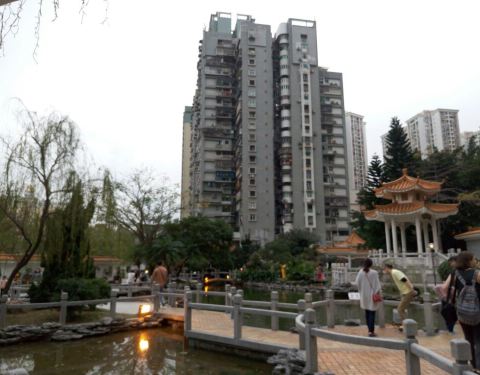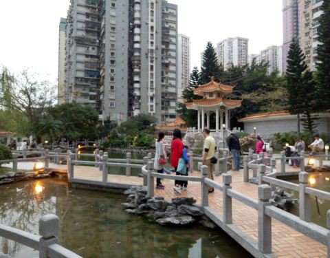 面对着高楼林立的商住楼,再结合中式传统风格的公园,真的像是在江南。楼亭的瓦片风格与闽南地区相同,所以又有一种东南沿海建筑的特色。不过在澳门能见到这样充满了大陆风光的公园真的很不容易,而且还是澳门最大的中式公园。