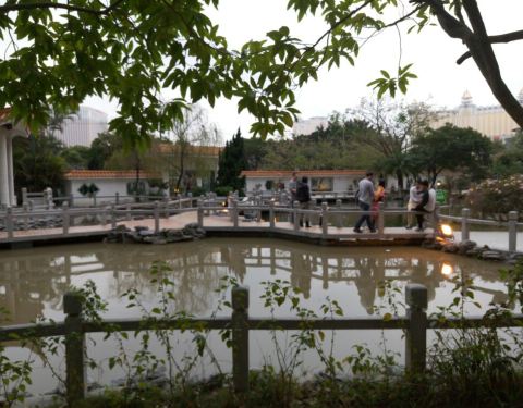澳门半岛是保留中式建筑最多的地方,相比较而言氹仔岛和路环岛等离岛地区基本上都是以西方建筑为主,很少看到中式建筑,除了一些庙宇之外。然而在氹仔新城区距离官也街不到1公里的地方有这样的一个公园,乍一看觉得很像是江南地区的城市公园。