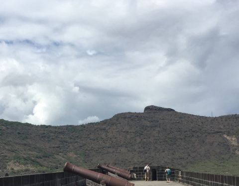 周日休息,不过看管理员一点小费也可以进入参观。登山炮台可以俯瞰整个路易港的风貌炮台山位于毛里求斯首都路易港的北部,山虽然不是很高,但因其山上至今还保留着英国人修建的炮台而得名。登山炮台可以俯瞰整个路易港的风貌。周日休息,不过看管理员一点小费也可以进入参观。
