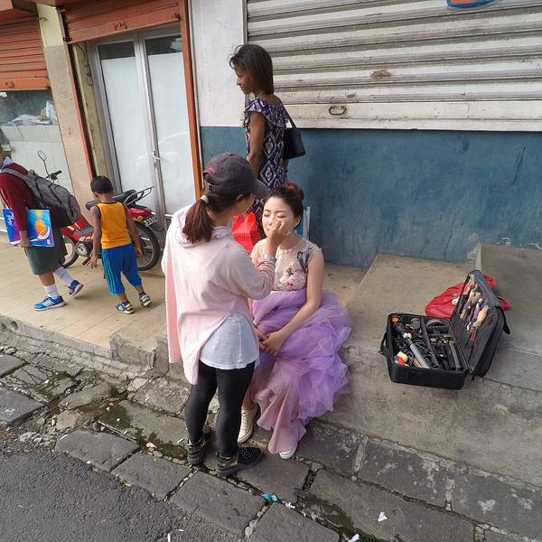 在化妆的同时,我看到对面有两个高中模样的小伙子,他们俩在抽烟,可是是一个人在抽,抽了一半再给另外一个人抽。怪不得,说其实我们带香烟来毛球也...唐人街,我想拍一些当地特色融入的照片。