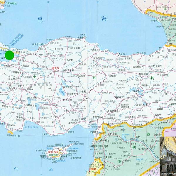 马尔马拉海,连接爱琴海和黑海马尔马拉海在绿点位置,连接爱琴海和黑海。