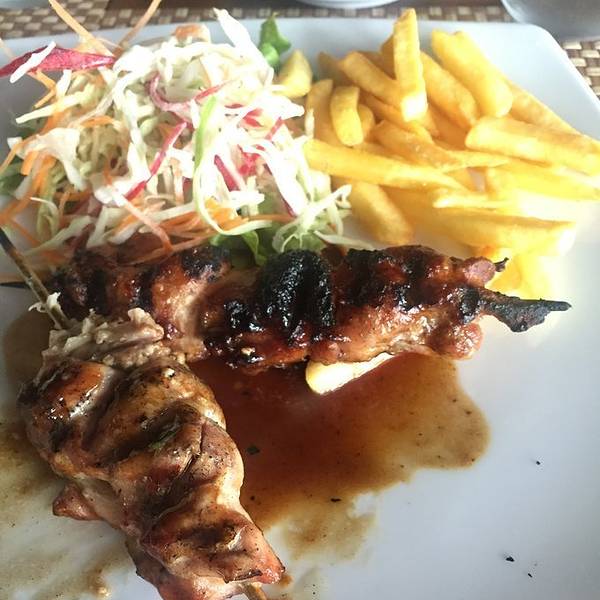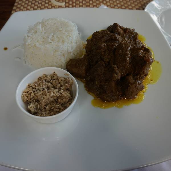 毛里求斯的景色真的是太棒了,如果能从高处观赏就更赞了,在毛里求斯的这个餐厅里面就可以完成心愿,吃的美食,看着美景,这里的菜单上不是很多,主要还是吃肉,毛里求斯的肉香料加的挺多的,味道很一般。