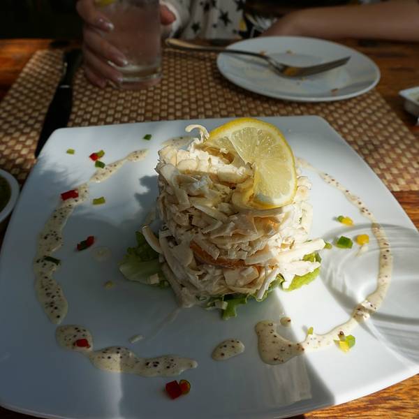 特色就是百万富翁沙拉,是棕榈树心,脆脆的,很好吃,有点像核桃的味道,物以稀为贵嘛~可惜下雨了