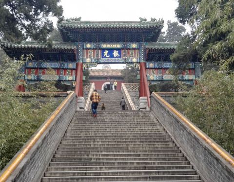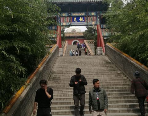去永安寺烧香,人不是一般的多,下台阶要小心哟,坡度很陡。