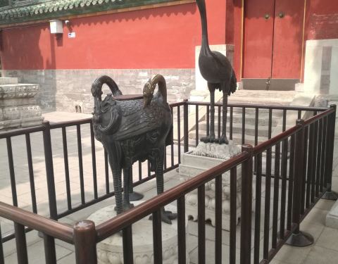 这里是北海内的一处景点。活灵活现这里是北海内的一处景点。在白塔下的永安寺山门,也是目前蹬塔的必经之路。铜塑为山门两侧的陈设。活灵活现。