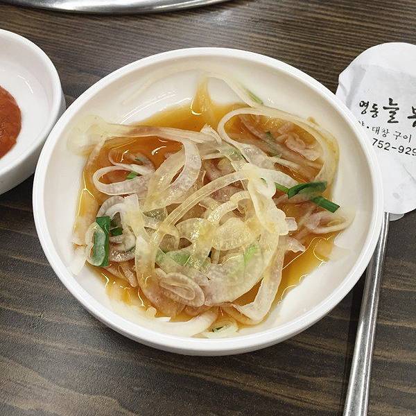 服务员推荐我们这道小菜非常好吃哦,还有多帮我们拿一份。各类烤肉的价格。大家烤肉店面。大家烤肉3号店