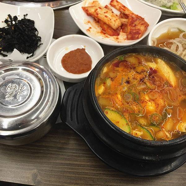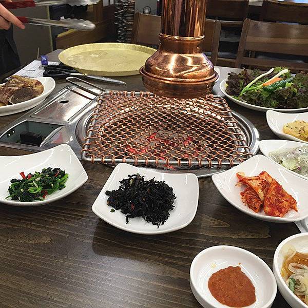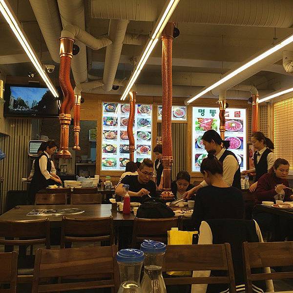 傍晚回到明洞,我们选择了明洞大家烤肉,这里供应韩国家常菜,包括鸡汤、烤肉、石锅拌饭、泡菜汤和酱汤等等。 人均价格大概在150元人民币左右,推荐大家点酱排骨。