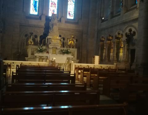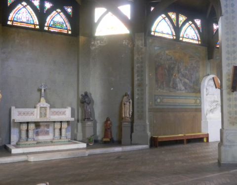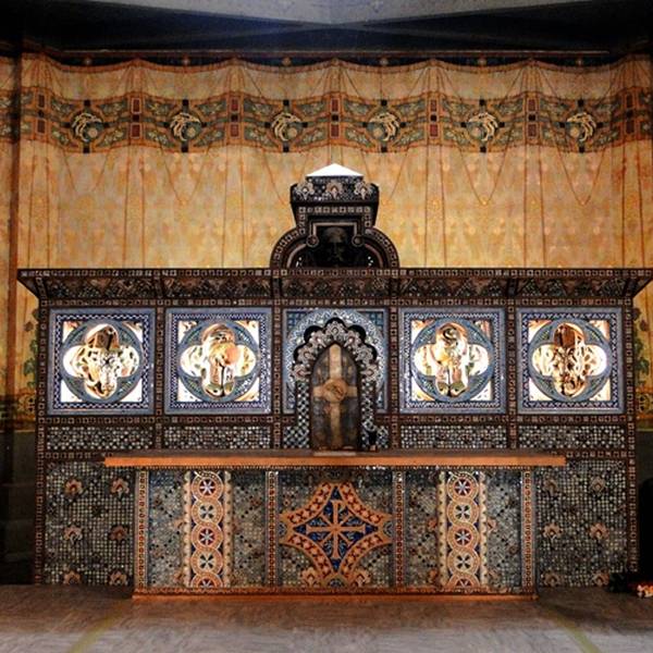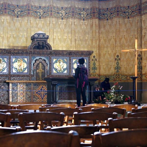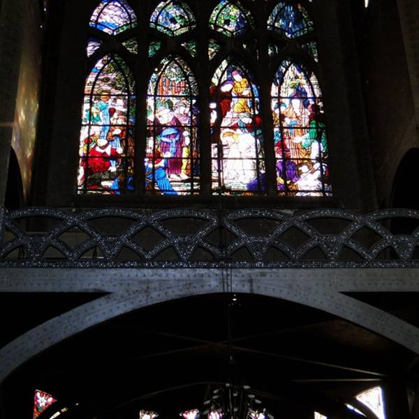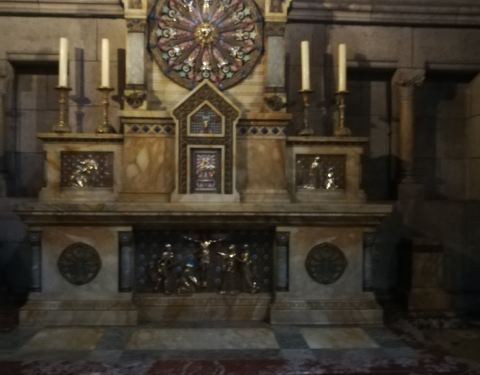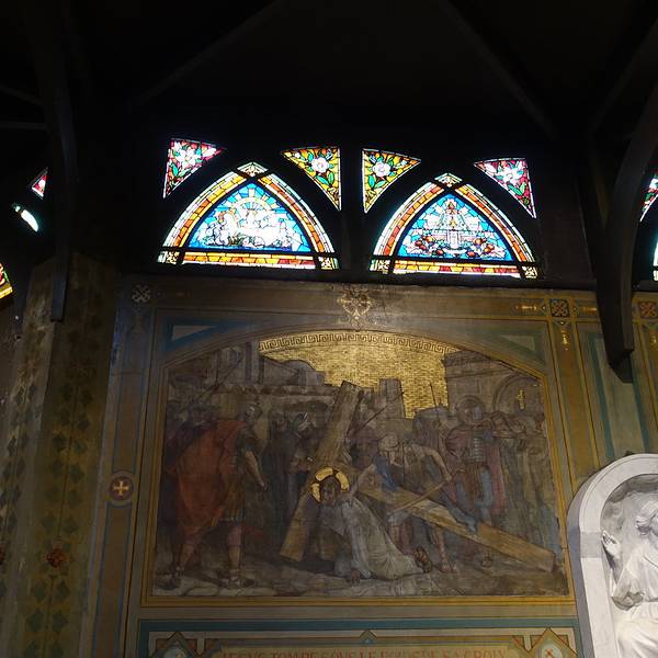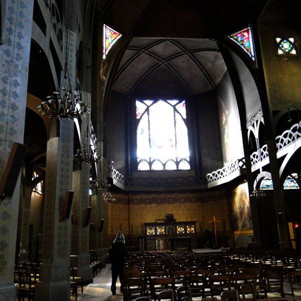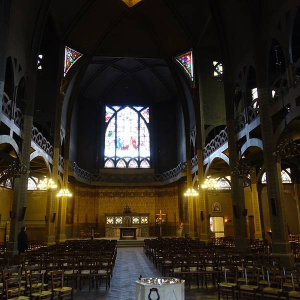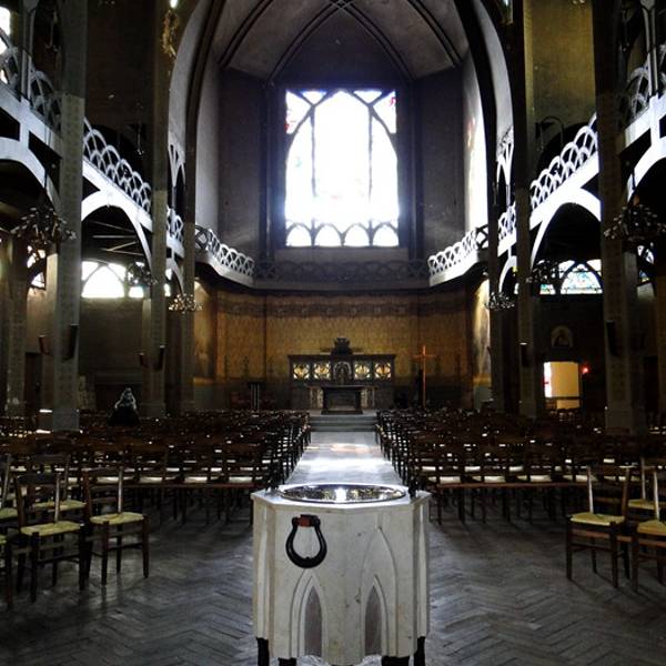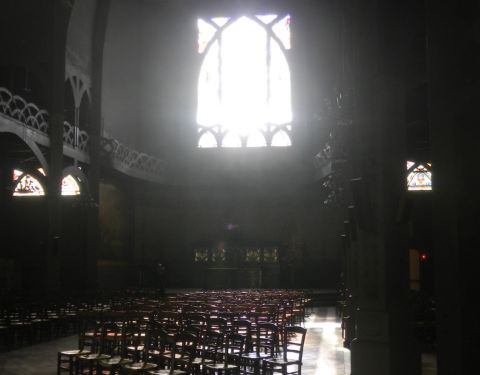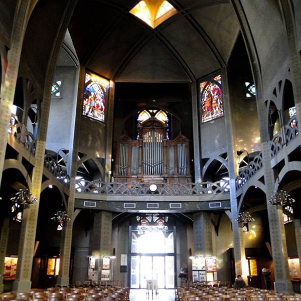 出口的对面就是这座奇特的教堂,由设计师Anatole de Baudot于1904年完成,不同于其他教堂的古典风格,它完成于20世纪初,是巴黎第一座用钢筋溷凝土建造,以及使用磨光原色宝石做装饰的教堂,带有世纪末的颓废气息,又不失庄严。