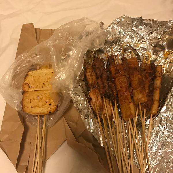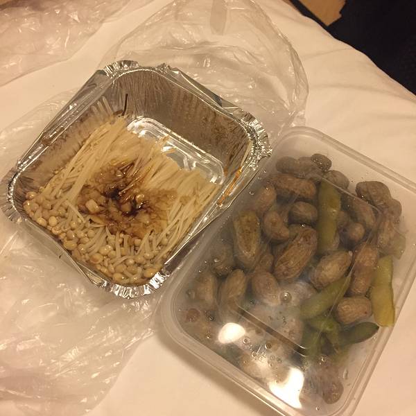 入住酒店后时间关系就不出门了,订了望京小腰烤串外卖。烤馒头不好吃,很干很硬难嚼,招牌望京小腰有股骚味有点儿腻,不推荐;鱼豆腐和五花肉好吃不腻推荐。锡纸烤金针菇味道爽口又不乏浓郁的酱香味,推荐;毛豆和花生味道一般般,盒子里边有粘粘的水,看起来有点像剩菜,不推荐。北冰洋味道和健力宝、芬达差不多,个人喜好偏向健力宝。