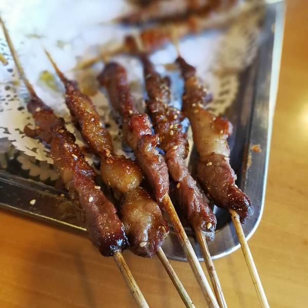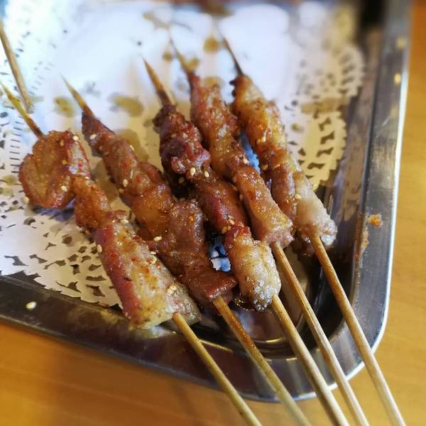 望京小腰是望京地区一家特别有名的烧烤店,夏天的时候人非常多,有好几家分店,烤串重点推荐肉串,肉筋和鱼豆腐,还点了小腰,面包片,烤韭菜,烤茄子,疙瘩汤。整个餐厅给人的感觉卫生条件很好,烤盘都比较干净。【烤肉串】价格来说不算贵了,味道还可以,肥瘦相间,大小处于小肉串和大肉串之间。【肉筋】肉筋感觉比肉串更好吃,可能个人不太喜欢肥肉,所以对于肉串里面的肥肉很排斥,但是肉筋里面看似肥肉吃起来却很劲道也不腻,重点推介。【鱼豆腐】爱吃鱼豆腐的人不要错过,鱼豆腐烤过之后表皮有种脆感,很是好味。【疙瘩汤】西红柿鸡蛋疙瘩汤,平时吃烧烤也是必点的一道,很美味,量很足,两个人没吃完,是一大蛊的量。疙瘩做的很小,吃起来很暖。【烤韭菜】烧烤必点。酱料用的很足,口轻的人会觉得有点咸。【烤鸡翅】不是很肥腻,上面撒的调料感觉很香,口味很丰富有层次感。很入味的感觉,喜欢的不要错过。【烤茄子】这个比想象的好吃,茄子是用带点酸甜口味的酱料烤制的,第一次吃到烤茄子是酸甜味道的,味道不错。【面包片】面包片上撒了白糖,涂了比较重的油,其实感觉不用这么重口味。还可以,不做推荐。 总体来说就餐体验很好,上餐速度快,服务员态度很好,大部分烤串都比较好吃。很适合夏天去体验一下,冬天可能会有点冷。