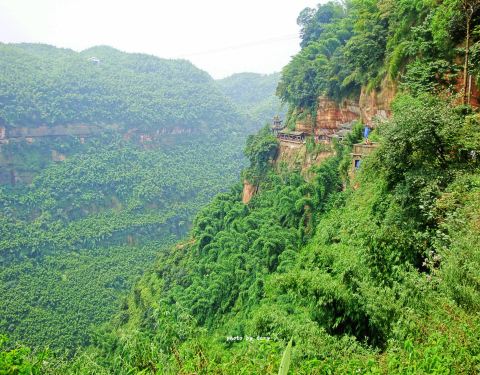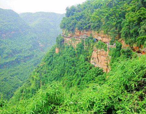 从仙寓洞或者仙女湖都要路过。比较特别,依山而建,全部都是建筑在悬崖绝壁上,天气好的话可以看见下面的全貌,根本不用去索道。