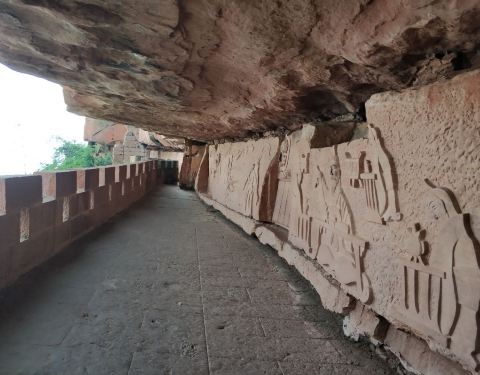 洞上绝壁凌空,洞下削壁千纫,行走其间,非常险峻,视野也非常佳。崖壁上还有近人所做的三十六计壁画有看点