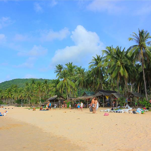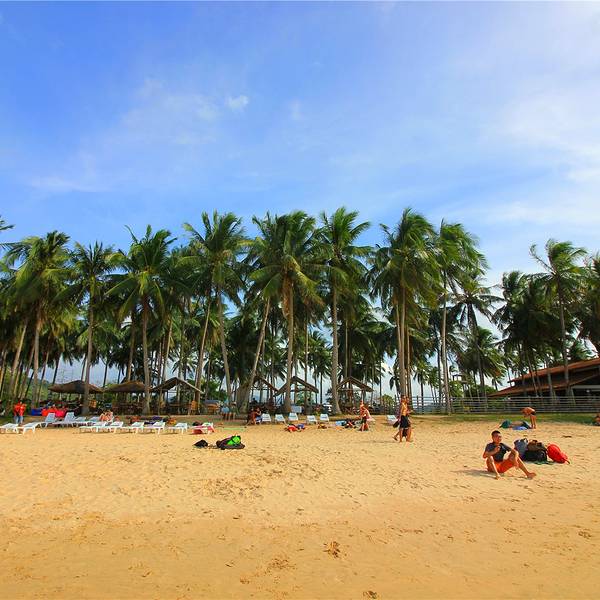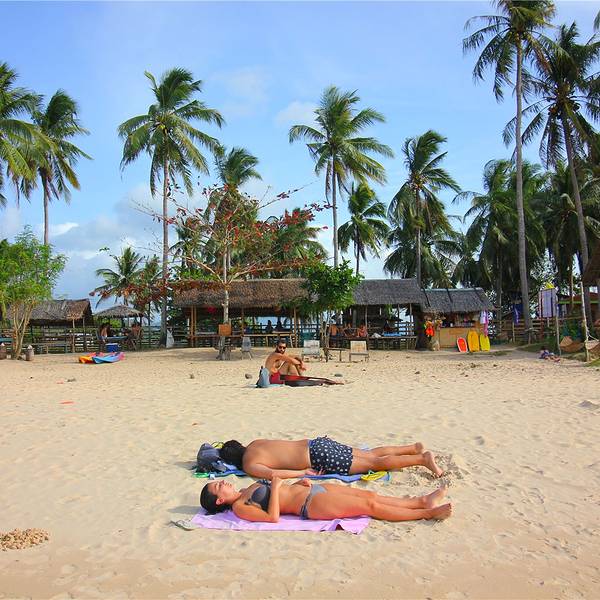 非常隐秘的纳克潘海滩和卡礼唐海滩,虽然前往交通有些不便。但这里几乎没有什么游客,纯净的海水伴着洁白的沙滩,沿岸椰林密布,最难得的是,在这里不会受到其他游客的打扰,可以安静地独享这片美丽的风景。 由艾妮岛自驾或者包车前往海滩,都是不错的选择,沿途一路穿梭在茂密的林间,也令人心情愉悦。差不多40分钟,即可到达安静的纳克潘海滩。 海滩附近海水纯净,沙质松软,非常适合海边漫步。周围没有太多商业气息,只有几间简易的餐厅,可以于此点一杯咖啡,静静的欣赏大海美丽的景色。 如果三五好友一同前往,还可以在海边打打沙滩排球,或者进行一切其它的运动,一下午的时光便会变得悠闲而惬意。 昏黄时分,海水逐渐上涨,阳光逐渐变得柔和,将整片海滩照耀的更加迷人。坐在沙滩上,欣赏远方唯美的日落景观,沉浸在浪漫美好的气氛之中。 【交通】 纳克潘海滩因为地处偏远,交通稍微有些不便。最好的方式便是由艾妮岛租一辆摩托车,自己骑行前往,租车费用一条大约80人民币,车程40分钟至1个小时; 【门票】 海滩免费开放,不收取门票费用; 【贴士】 附近的餐厅不是很多,可以自己准备一些巧克力和饮料带着; 因为交通不便,游客较少,如果喜欢热闹的话不是很合适