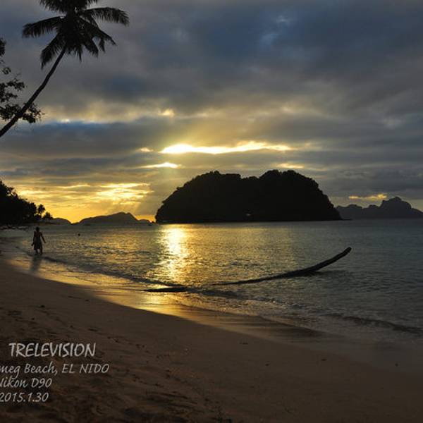 由于精神不佳,我没有在岛上晃悠多久,简单拍了一些照片后又回到树荫下、架起吊床眯着眼了。面对着无敌海景居然有心思睡大觉,想想也是“奢侈”至极啊!而在岛的另一边,Jeromy“哄”着两姑娘各种摆弄地玩创意摄影正不亦乐乎,连我老妈也被吸引过去疯玩jump shot了。这也难怪在整个旅行结束后,大家都一致认为Pinagbuyutan绝对是EL NIDO最令人印象深刻的地方了:它真是有一种神奇的魔力,似乎也讲不出有什么大风景,但每一寸沙、每一棵树、每一片海,都能让人由内而外地感到一种来自纯粹大自然的闲适与放松、简单而又朴素的愉悦。这也正如EL NIDO这个名字留给我的第一印象:像孩子一般单纯而快乐。 行程结束,回到镇上的海滩,仍然处于“萎靡”状态下的我直接叫了部tutu回住所倒头就睡。没想到,晚上,热情的Jeromy居然一个人来我们的住处坐客,陪大家一起聊聊天、顺便也来看看“病殃殃”的我。(真是感动啊…)我们一起围在阳台的餐桌旁,顶着漫天繁星,优哉游哉得吃着烤鱼喝着茶,真是温馨得好似一家人。 正巧带了一些天朝特产的绿茶,我手把手教着Jeromy中国的“品茶功夫”,却让一向“油嘴滑舌”的他忽然静了下来。他看着一点一点散开的茶叶、凑着杯口试图嗅一嗅这种全新的香气,就好像在思考什么人生哲学一般、若有所想地注视着。 不过没一会儿,Jeromy又迅速恢复“油头”本色:他说自己真心很喜欢中国,一直想来天朝看看;正巧这次遇上了我们,便玩笑道:干脆你们走的时候带我一起飞吧!我个子小可以缩进你们的行李箱哈!…… 就这样,大家在一片欢愉中结束了这顿颇具温情的晚餐会。临走前,Jeromy说,如果明天想继续走C线的话直接找他就行了,否则,他明天估计也会放一天假了(即是说可能暂时没生意了)我明白他的意思:曾经了解到干他们这行的其实日子过的很紧凑,出一次海一般也就两三百披索的工资,少干一天就是少赚了这些钱,对生活的影响其实也不小了;不过鉴于我这种身体状况,只能遗憾地说,明天看样子是得及时休整了,要不后天吧?他却无奈地没法给我一个确定保证。毕竟,他也只是为船长和旅行社打工的普通人而已。 就这样地悄然告别了Jeromy。本以为他也和我们一样会真的“放一天假”,没想到在之后的日子里,我们再也没有遇见这个热情洋溢、能言健谈、任劳任怨、会哄姑娘又会修草帽的小伙子了。可能这就是所谓“一面之缘”吧。 为了让我恢复精神,同时也让活跃了好几天的大家积攒积攒体力,1月30日我们“婉拒”了继续出海的诱惑而宅在房间里悠闲地“浪费时间”——其实这是土豪才应该有资本享受的“度假”节奏、而绝非我们“穷游客”啊!躺了大半天,觉得一整天门都没处、真有点对不起自己那还没挖掘的“驴友精神”了,于是临时决定跑去看日落。结果到了才发现天气及其不给力,云层厚得简直不留一丝余缝;不过好歹也算发现了Marimegmeg Beach这个离镇上比较近(坐tutu车15分钟左右)的风水宝地,整个长长的细沙海滩无论从风景还是氛围都是质量颇高的,还真验证了加拿大人Ben的经验之谈。比起同样号称“日落海滩”但沙质如烂泥、水质如码头一般的Corong Corong Beach,M海滩实在是漂亮太多,而且休闲娱乐设施一应俱全,买只鲜美的椰子躺在细沙上守候着日落、简直惬意绝伦;有闲情者还可以去对面小岛上的滑索zipfly上玩一把。走到海滩尽头的拐角处为高级度假村Las Cabanas的专属海滩(好在它仍然是开放给所有游客的),直接面对连绵的群岛与下沉中的夕阳,不愧为EL NIDO镇上最佳的日落观赏点。