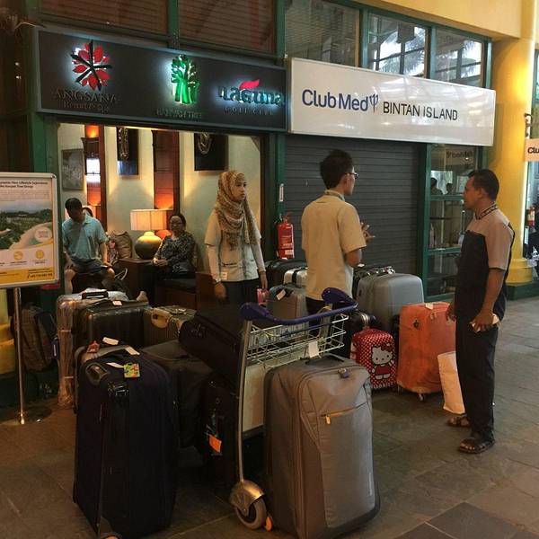 50分钟左右到达印尼民丹岛码头。在码头,换了当地货币,立马变土豪。出来后顺利找到我们此行要入住的悦椿酒店接待室,和工作人员确认行李和人数,准备一会儿乘大巴去往酒店!