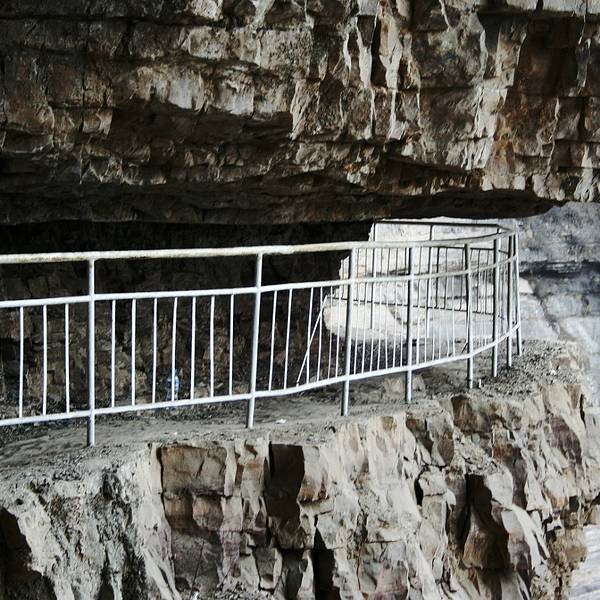 总算从山底通过旋梯爬到了山顶,一路上又是拍照又是哆嗦的,磨磨蹭蹭,而且还需要弯着身子半蹲着蹭过一条小道,这小道三面是岩石,一面是悬崖(用栏杆保护着)娱乐性也很强,就是千万别地震。