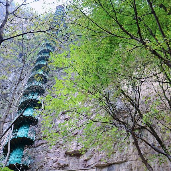 金骆驼 因为我非常喜欢景区里刀劈斧削的太行山绝壁边开凿搭建的各种悬崖旋梯了。