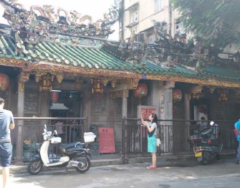 外马路一路走来,走到了老妈宫,老妈宫其实就是天后宫,由于汕头靠海边,之前城市很多人都是出海捕鱼为生的,因此,潮汕这边天后宫还是比较受当地人重视的,屋顶的彩色陶瓷拼制出龙凤的样子,非常的漂亮,旁边还有观帝庙