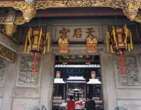 没有多大的场面,我只是看了一下,老妈宫建筑确实很平民化。 这样说可能有点夸张,但是庙就感觉像居民区里的便利超市一样,特别深入民众,像一种普普通通的生活方式。 庙里的装修风格跟东南亚,尤其马来西亚那边...