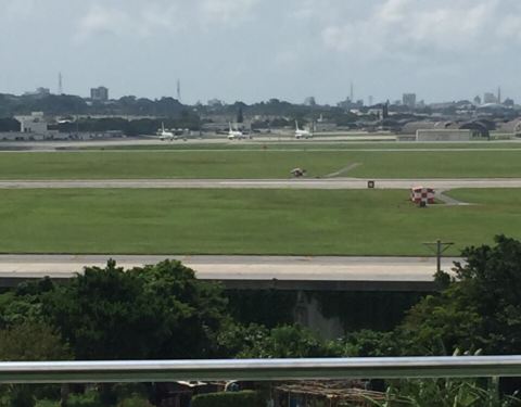 一个观望平台,一个展览室,身处实地,还是能触发你去回顾历史。控制与被控制就这么现实一个观望平台,一个展览室,身处实地,还是能触发你去回顾历史。很远,看不清,但这个属于冲绳中部地区,约83%的地盘(约12平方公里)都归老美,还时不时有战斗机在空中飞过。控制与被控制就这么现实。