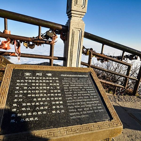 其实,金刚嘴作为一般人而言来这里欣赏宛如仙境的云海景观与佛光奇景是最为主流的目的地了金刚嘴就是在金顶舍身崖的最边缘的位置,是整个峨眉山金顶之上观赏云海和佛光的最佳位置。从站在金刚嘴的边上感觉整个人放佛悬空在云海之上,有一种非常神奇的假象,这种假象也许是整个峨眉山金顶之上印象最为深...金刚嘴就是在金顶舍身崖的最边缘的位置,是整个峨眉山金顶之上观赏云海和佛光的最佳位置。从站在金刚嘴的边上感觉整个人放佛悬空在云海之上,有一种非常神奇的假象,这种假象也许是整个峨眉山金顶之上印象最为深刻的了吧?