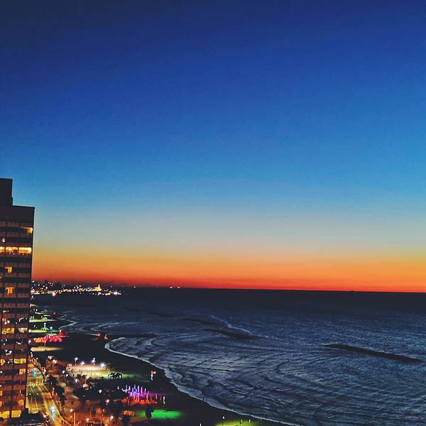 回到特拉维夫时,太阳正要落山 我们一路奔跑到海边,不顾鞋子里浸满了沙 疯狂地按快门本以为落日是最美的景象 没想到晚霞才是今夜的主角霞光随着夜色发生着变化 像一条绮丽的光带,拥抱着褪去的潮水