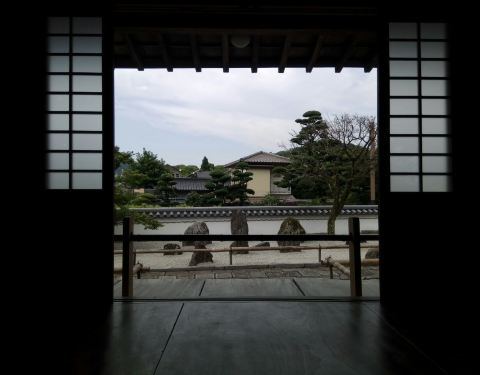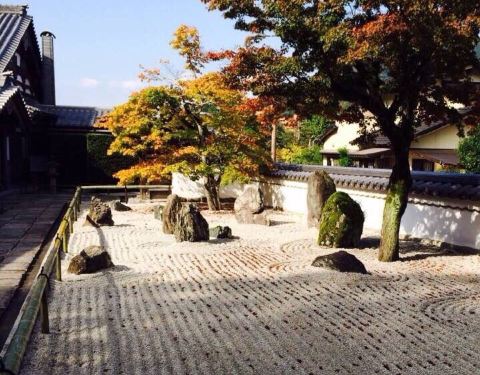 这里的石庭还挺有名的,叫「一滴海」,枯山水里有一株枫树,红叶落在石庭里很有禅意去的时候在整修,所以没有进到里面,只在庭院里看了看石庭。这里的石庭还挺有名的,叫「一滴海」,枯山水里有一株枫树,红叶落在石庭里很有禅意。
