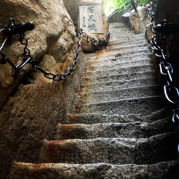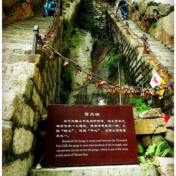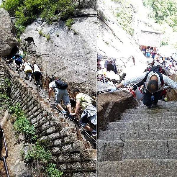 上山容易,下山难,这样的路,叫我下去,我还真不敢!脚会抖得特别厉害!爬『华山』有一要诀