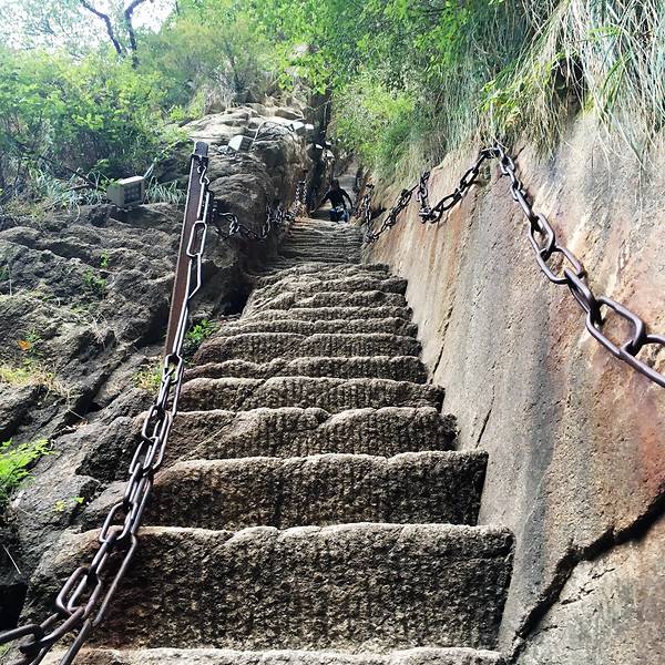 而且石阶特别窄,越往上的小道越是垂直和窄小的,我机智的选择了攀岩的方式,左右拉住铁链大步跨上去...百尺峡有两条小道可以上,我一般不走寻常路线,另外两个小哥选择放弃,而我却挑战了一个很窄的小道,老毛陪着我。这条道只能通过一个人,而且石阶特别窄,越往上的小道越是垂直和窄小的,我机智的选择了攀岩的方...百尺峡有两条小道可以上,我一般不走寻常路线,另外两个小哥选择放弃,而我却挑战了一个很窄的小道,老毛陪着我。这条道只能通过一个人,而且石阶特别窄,越往上的小道越是垂直和窄小的,我机智的选择了攀岩的方式,左右拉住铁链大步跨上去,还让老毛在后头给我拍小视频,哈哈,结果我的速度太快了,把他抛到远远的。 展开