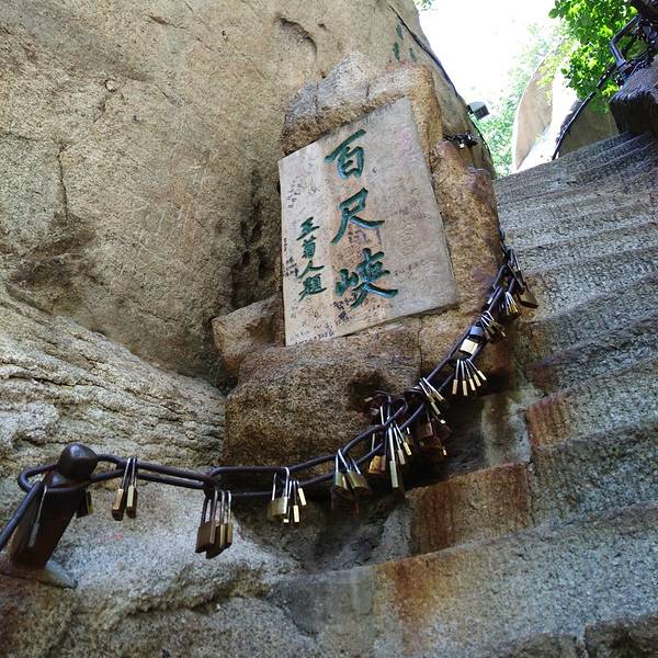 其中鹞子翻身和长空栈道都是90+,别怕,有安全挂钩,图在后面!华山上的铁链,几乎没有不挂锁的过了千尺幢,上面一段就是百尺峡,台阶没千尺幢那么多,不过台阶比千尺幢要陡些,道路狭窄,坡度至少80+(后来爬着爬着就会习惯的,因为动不动就会遇到那种70+的台阶,还老长八长。其中鹞子翻身和长空栈道都是90+...过了千尺幢,上面一段就是百尺峡,台阶没千尺幢那么多,不过台阶比千尺幢要陡些,道路狭窄,坡度至少80+(后来爬着爬着就会习惯的,因为动不动就会遇到那种70+的台阶,还老长八长。其中鹞子翻身和长空栈道都是90+,别怕,有安全挂钩,图在后面!) 展开
