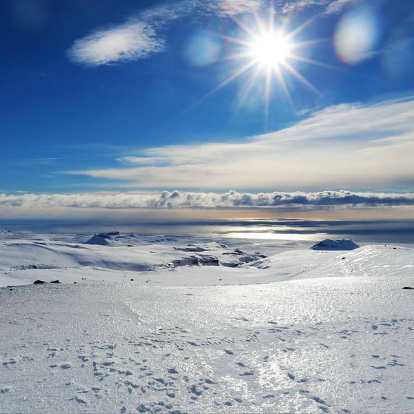 米达尔斯冰原是冰岛位置最南的冰川,也是冰岛第四大冰川米达尔斯冰原是冰岛位置最南的冰川,也是冰岛第四大冰川。冰原西临埃亚菲亚德拉冰盖,下有著名的活火山卡特拉火山。 当你看到蔚蓝的天空下那片白茫茫壮观的冰川时,你会抛却之前旅途的疲劳感。