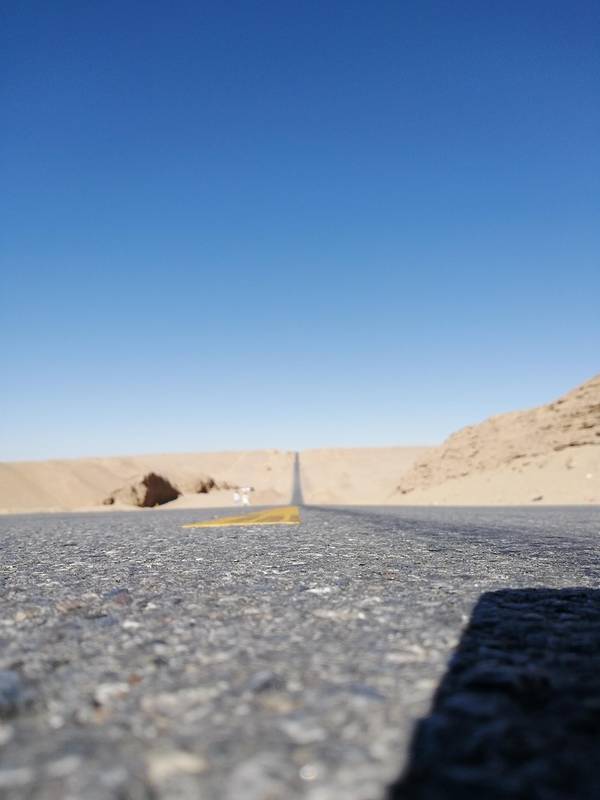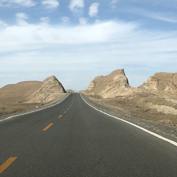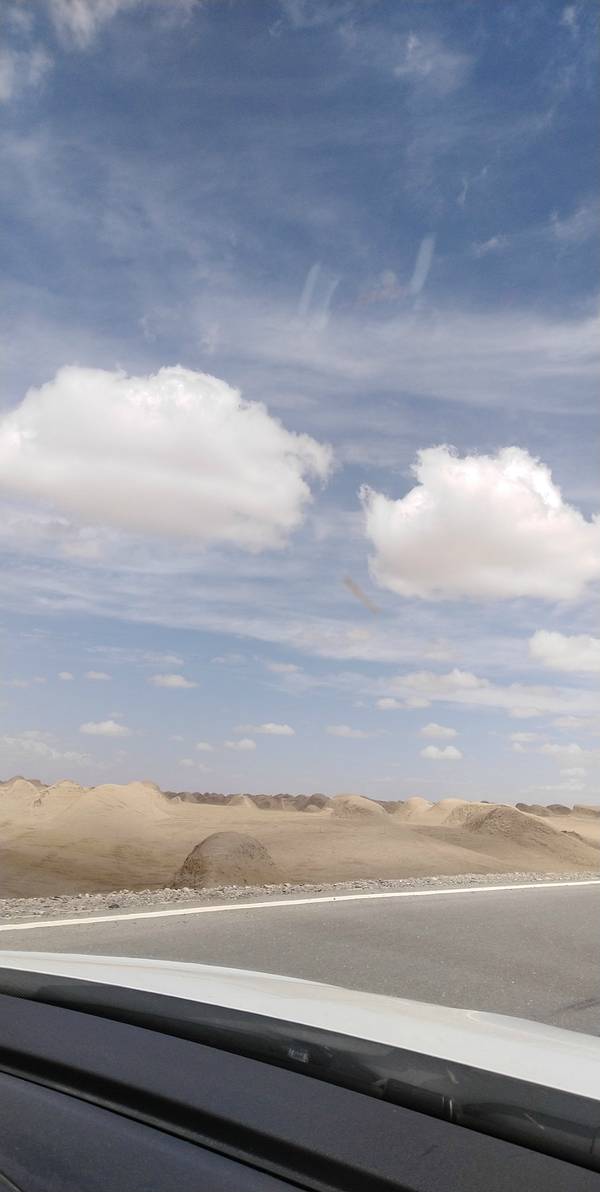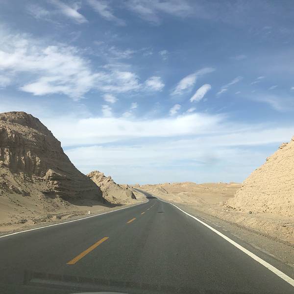 其实我能理解他们的想法,但是因为这条路的车流量其实也挺多的,这样的做法其实还是很危险的,还是希望这样做法的人尽量不要这样做。在雅丹地区里左屈右扭的公路~在这里能看到移走的沙子正在入侵。