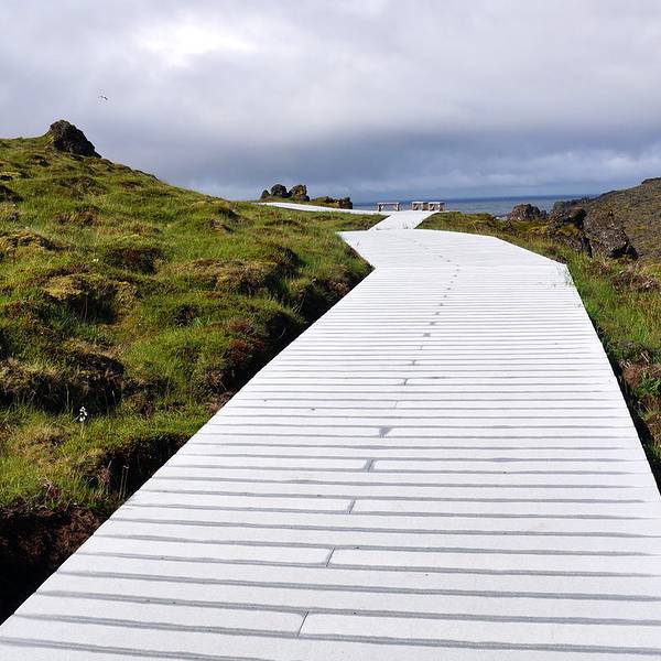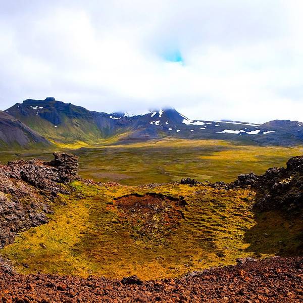 斯奈菲尔火山及其周边地区位于雷克雅未克的西北,属于Snæfellsjökull半岛,这里也是斯奈菲尔.国家公园(Snæfellsjökull National Park),是冰岛唯一一个延伸到海岸线的国家公园。这座火山高5000英尺(约1524米)是冰岛著名的山峰,自1929年后就再也没有喷发过。法国作家儒勒·凡尔纳著名的小说《地心游记》中,将斯奈菲尔火山比为通往地心的入口。这里充满了地质奇观。美丽的悬崖,饱含美景的步道,小村庄,和壮丽的冰川。沿着Hellar 和Arnarstapi 两个小村庄的的乡村海岸线是非常流行的徒步路线。