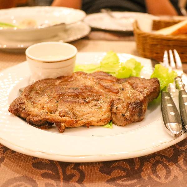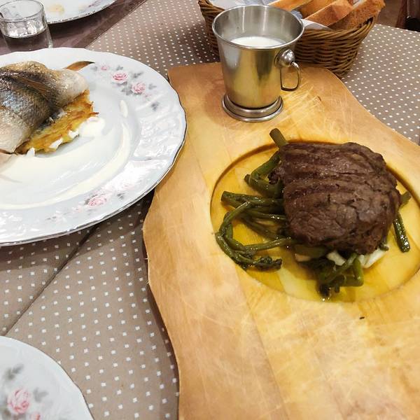 说实话看到这么多国人都来这里我和小伙伴一开始是有点心虚的,担心这是中国人的网红店,不过事实证明味道还是相当有保障,值得来尝尝。俄式餐厅里好像都喜欢在桌子上放饼干和糖果,不知道是不是为了让来就餐的人们快速补充些热量呢。红菜汤开胃,土豆鱼饼细滑,蜂蜜啤酒醇厚,味道都很棒。鲑鱼很鲜美