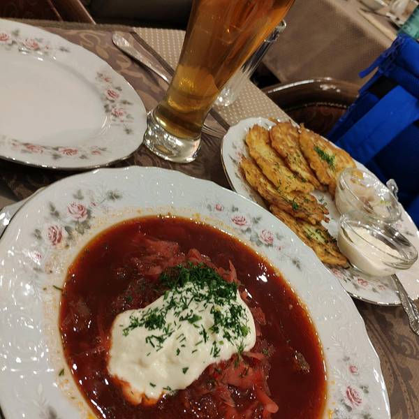 - 红菜汤成了必点菜式,带有酸酸甜甜有点梅子口味,也是在俄最喜欢的一道菜!这是最满足的一餐!性价比很高