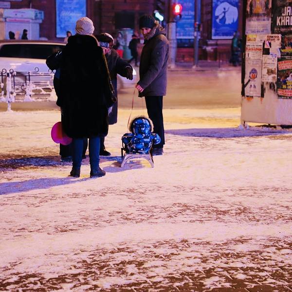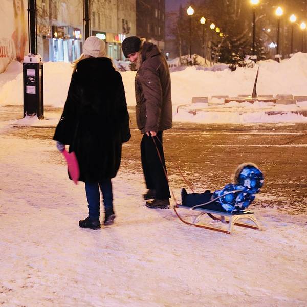 俄罗斯的肉真的很好吃!吃跑喝足回酒店。夜幕降临气温一点点降低!用围巾把自己包的严严实实,第二天就要出发奥岛换条新路线找找超市带点上岛物资!顺手买了点伏特加。路中遇到儿童版雪橇!超级卡哇伊~