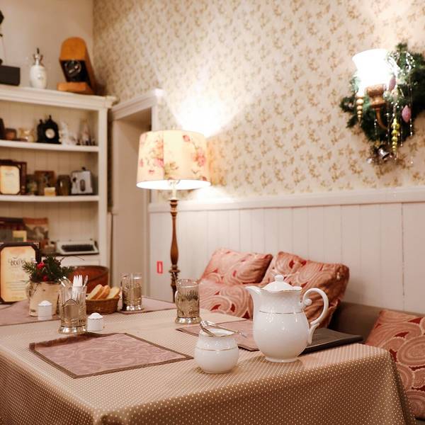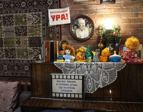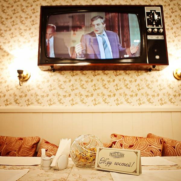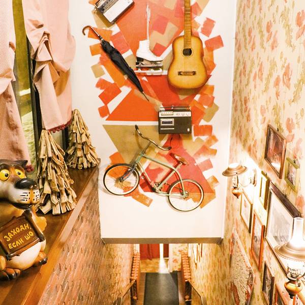 门面很小,就餐区域在负一楼,进门需要脱掉大衣,有服务员帮忙挂到衣帽间里。它是苏联风情浓郁的 俄罗斯 餐厅,装饰品大多是老式的电视机,收音机,落地灯等等。