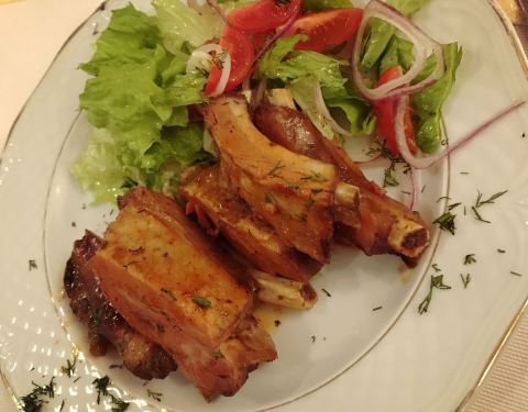 这家店比较推荐,是入住的酒店帮忙预定的,不预定可能要等很久的位。就在130风情街,多天后你会发觉伊市就那么大,由于那天对商务午餐不满意,所以我们点了:烤鸡、土豆饼、猪肋排、牛小排、羊肋排和两种不同的红汤,饮品虽然没有点伏特加,但也喝到了当地特色。商家采用的是“饿死你”营销,这顿饭一共吃了3个小时才把菜上齐,所以你懂不订位的苦了吧。整体来说菜品中规中矩,没有特别惊艳的地方,但也没有值得吐槽的地方。店里装修风格我很喜欢,属于比较有情怀的。