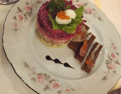 伊尔库斯科的苏联怀旧餐厅,在这里你可以品尝到最最地道的俄罗斯菜。著名的罗宋红汤,烤鳟鱼,鱼子酱等,早都非常的浑厚鲜香,虽然每道菜都只有一点点,但由于热量很高,吃的会很饱。