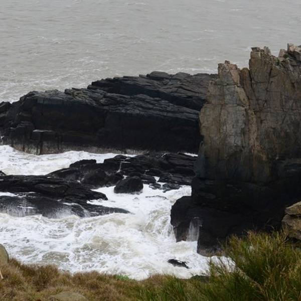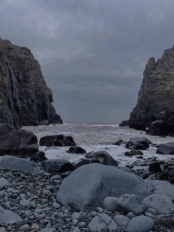 不同于昨日的碧海金沙,这里是一副大浪拍打礁石的画面。在灰色的天气下,冷酷的像是世界尽头小外甥盯着大浪出神,回头却突...夜宿平潭县城,第二天起来是个大阴天,驱车前往岛上唯一的收费景点:东海仙境,约15KM。