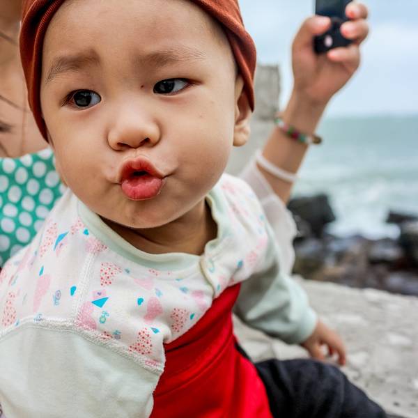 不同于昨日的碧海金沙,这里是一副大浪拍打礁石的画面。在灰色的天气下,冷酷的像是世界尽头小外甥盯着大浪出神,回头却突然嘟起嘴,正好被我捕捉到这架势颇有“沧海一声笑”的feel~天公不作美,但是拍人却十分适合。前方大量人像图片来袭~大人们在臭美,小宝宝聚精会神的吃橘子一边吃着橘子,一边赏景,开心过了头不同于大海的躁动,港湾里一片宁静 展开