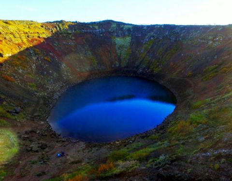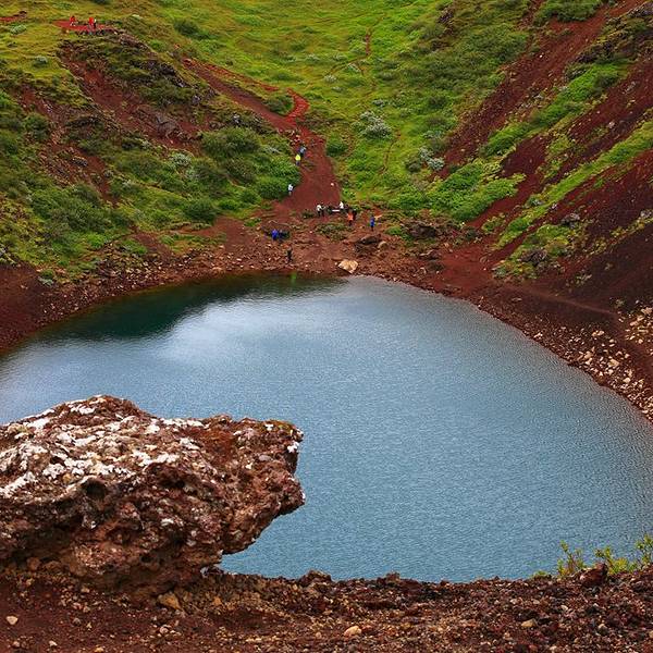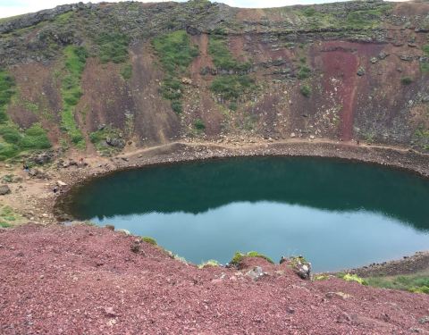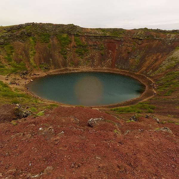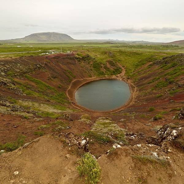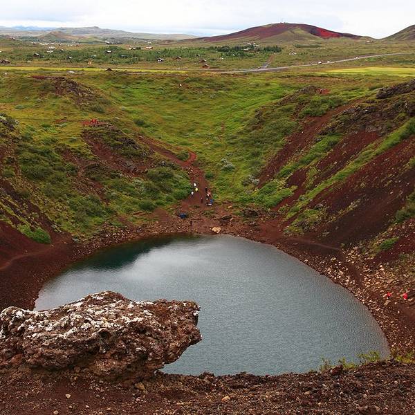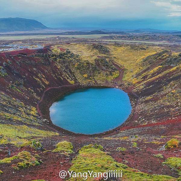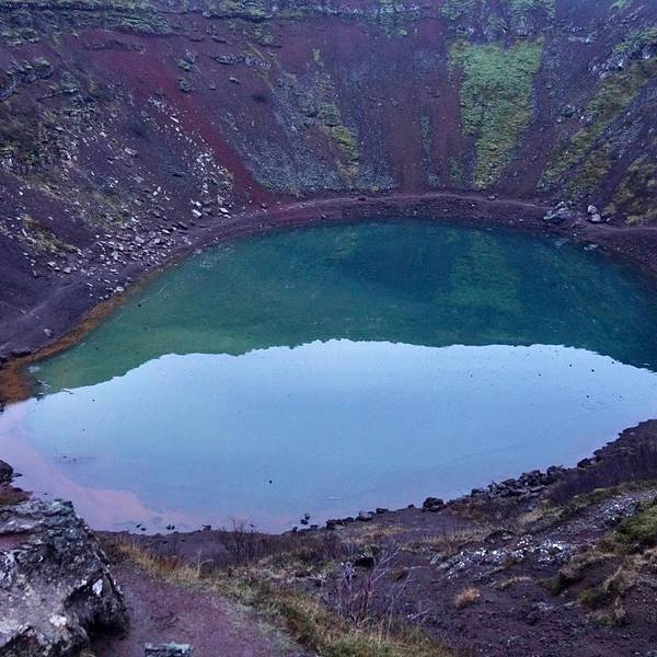 哦,对了,这个景点需要收费,门票400冰岛克朗,也是整个冰岛自然景观中唯一收费的景点Kerið火山口湖形成于6500年前的一次火山爆发,后经雨水积累而形成这个深度约55米、直径为170米至270米的椭圆形火山口湖。 由于吸收了周围土壤的矿物质,湖水呈鬼魅般的幽绿色,为世界上最著名的三个火山口湖之一...Kerið火山口湖形成于6500年前的一次火山爆发,后经雨水积累而形成这个深度约55米、直径为170米至270米的椭圆形火山口湖。 由于吸收了周围土壤的矿物质,湖水呈鬼魅般的幽绿色,为世界上最著名的三个火山口湖之一。这里的泥土是赤红色的,湖水是湛蓝色的,天气好的时候水面就是镜面。