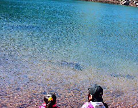 有特色的是这个火山坑里有水,天气好时水面就是镜面,可以围着走一圈,也可以下到水边,小石子路,有点滑