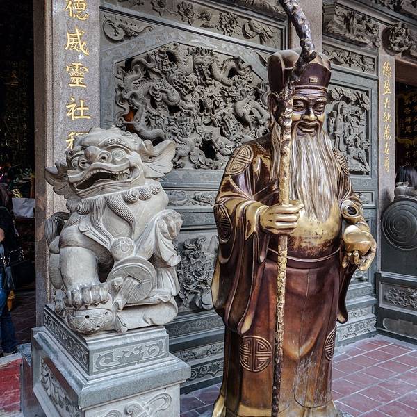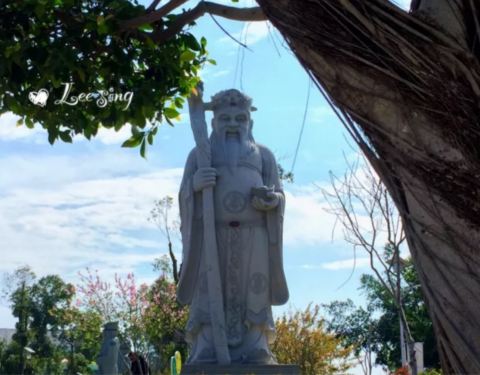 在庙里的月老像面前,我便看见两位大妈在给月老两旁的小童拉红绳,大概是给自己儿女牵线希望能看对眼。